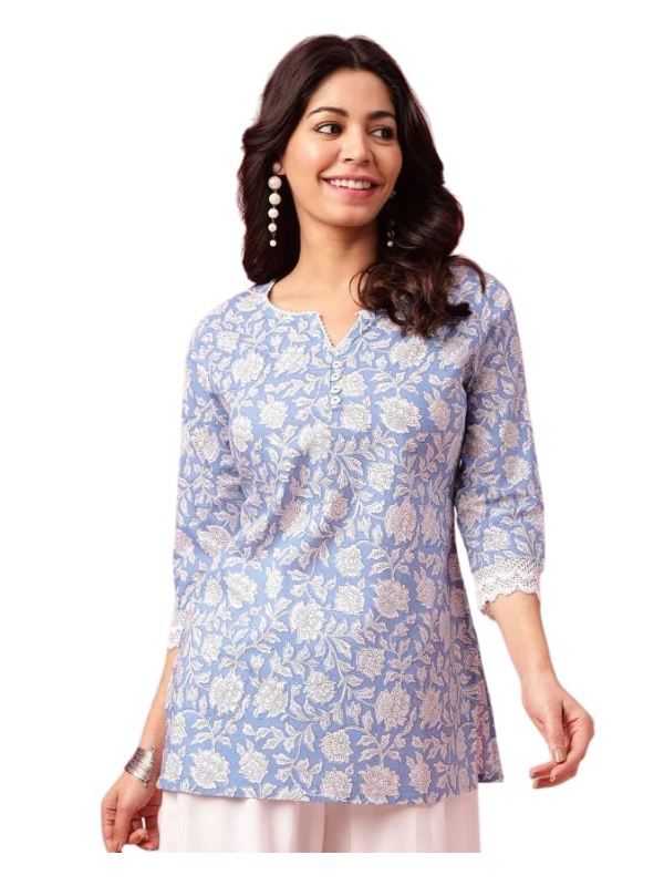 Pure Cotton Kurta Pant Set with Dupatta for Women, Blue