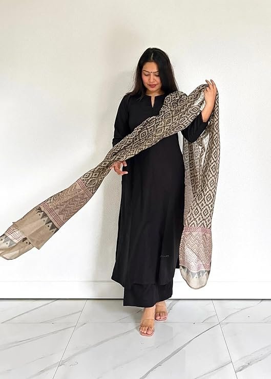 Women’s Rayon Viscose Straight Solid Kurta with Pant & Dupatta, Black