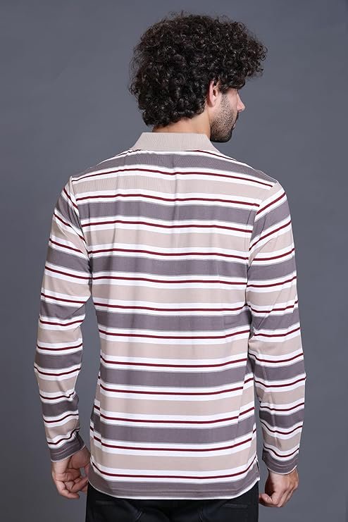 Classic mens t shirts with collar and 2- button placket and chest pocket with subtle logo for added style. This striped tshirt for men is desinged for given you a casual decent look.