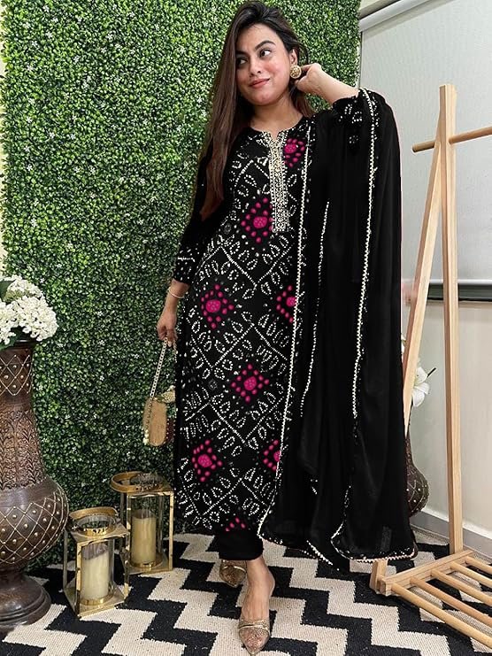 1 Kurta and 1 Pant with Dupatta || Work :- Printed with Handwork || Neck Style:-V- Neck
