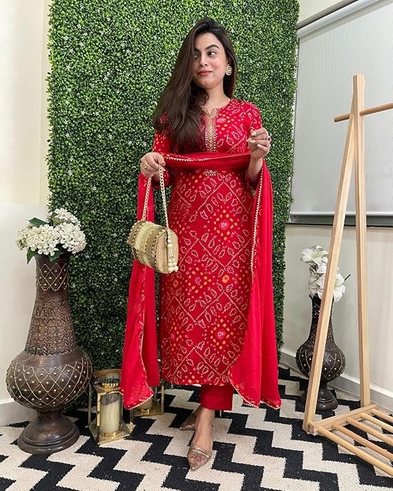 1 Kurta and 1 Pant with Dupatta || Work :- Printed with Handwork || Neck Style:-V- Neck