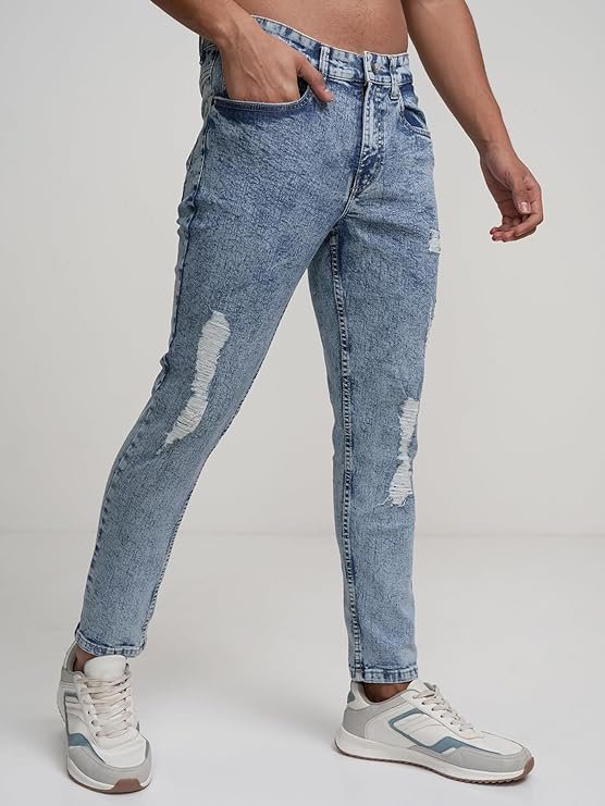 - 📝🛍️ Product Description:Make a bold statement with these tapered-fit highly distressed jeans, designed for those who love an edgy, rugged look. Featuring a heavy fade effect and distressed detailing, these jeans offer a worn-in, lived-in vibe with modern appeal. Crafted from stretchable denim, they provide both flexibility and comfort, ensuring ease of movement while maintaining their structured