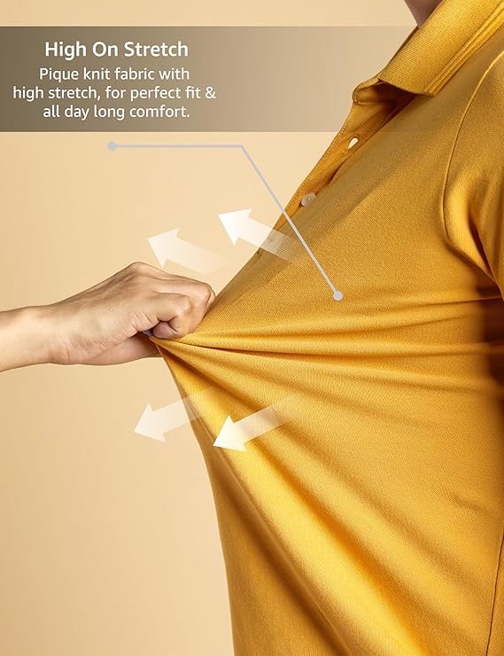 Men’s Cotton Stretch Solid Polo T-Shirt, Yellow
