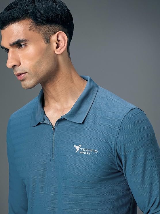 Men’s Full Sleeve Solid Polo T-Shirt, Blue